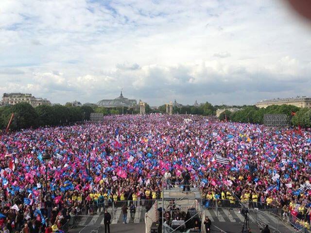 An estimated one million people took to the streets of Paris on Sunday to demonstrate against France's new same-sex marriage legislation. The law, which allows same-sex partners to wed and adopt, had already been in effect for over a week. President François Hollande signed it into law on May 18.
